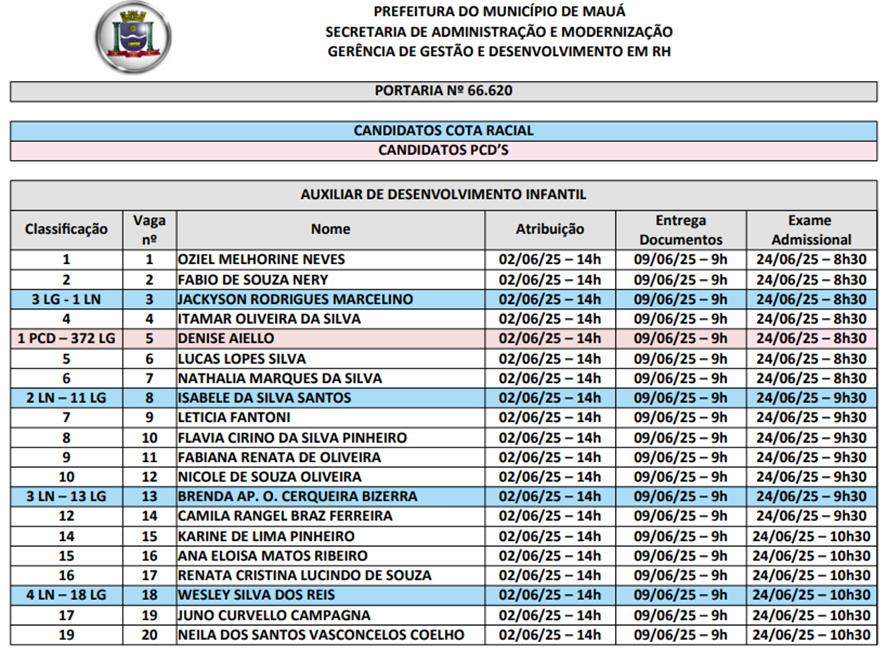A Prefeitura de Mauá publicou nesta semana a primeira convocação oficial dos Auxiliares de Desenvolvimento Infantil (ADIs) aprovados no concurso público nº 01/2024.